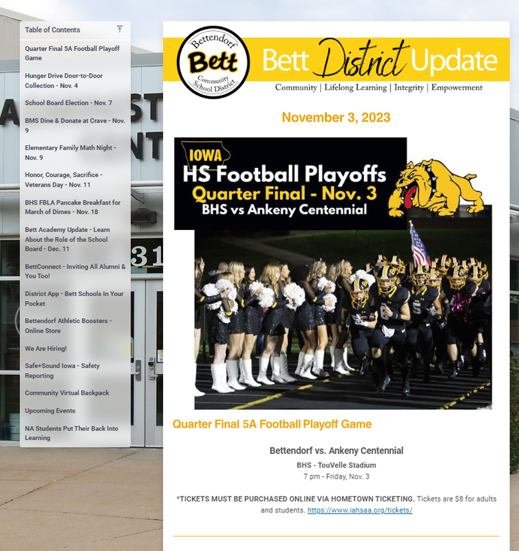 Check out the Nov 3 issue of the Bett District Update!
